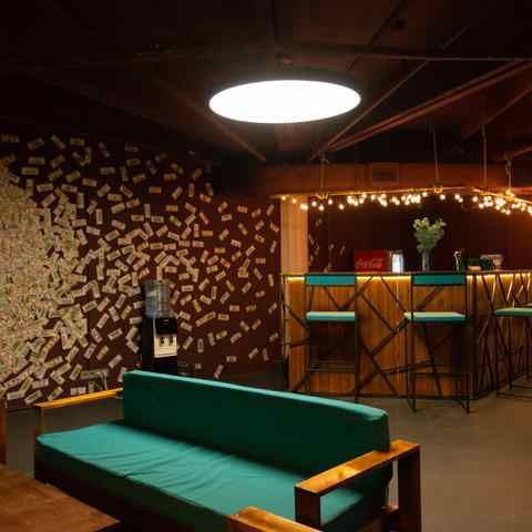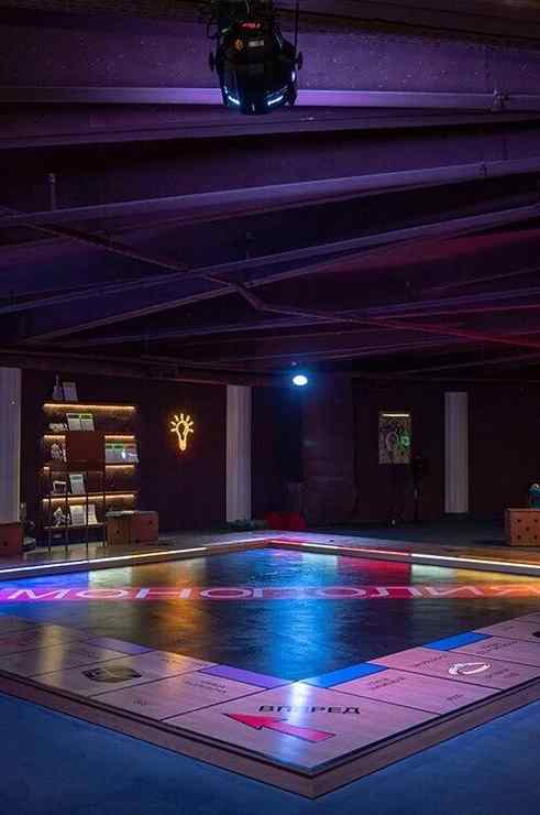 Площадь помещения 250 кв.м., что позволяет адаптировать его под любые потребности. Пространство легко доступно для всех жителей и гостей Минска. Расположенное в историческом районе города, оно приглашает посетителей ежедневно с утра до позднего вечера. В помещении множество декора и интересных зон для фотографирования, все оформлено в едином стиле, который отсылает гостей к главным принципам Монополии: «Власть! Богатство! Успех!».