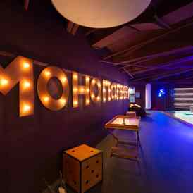 Площадь помещения 250 кв.м., что позволяет адаптировать его под любые потребности. Пространство легко доступно для всех жителей и гостей Минска. Расположенное в историческом районе города, оно приглашает посетителей ежедневно с утра до позднего вечера. В помещении множество декора и интересных зон для фотографирования, все оформлено в едином стиле, который отсылает гостей к главным принципам Монополии: «Власть! Богатство! Успех!».